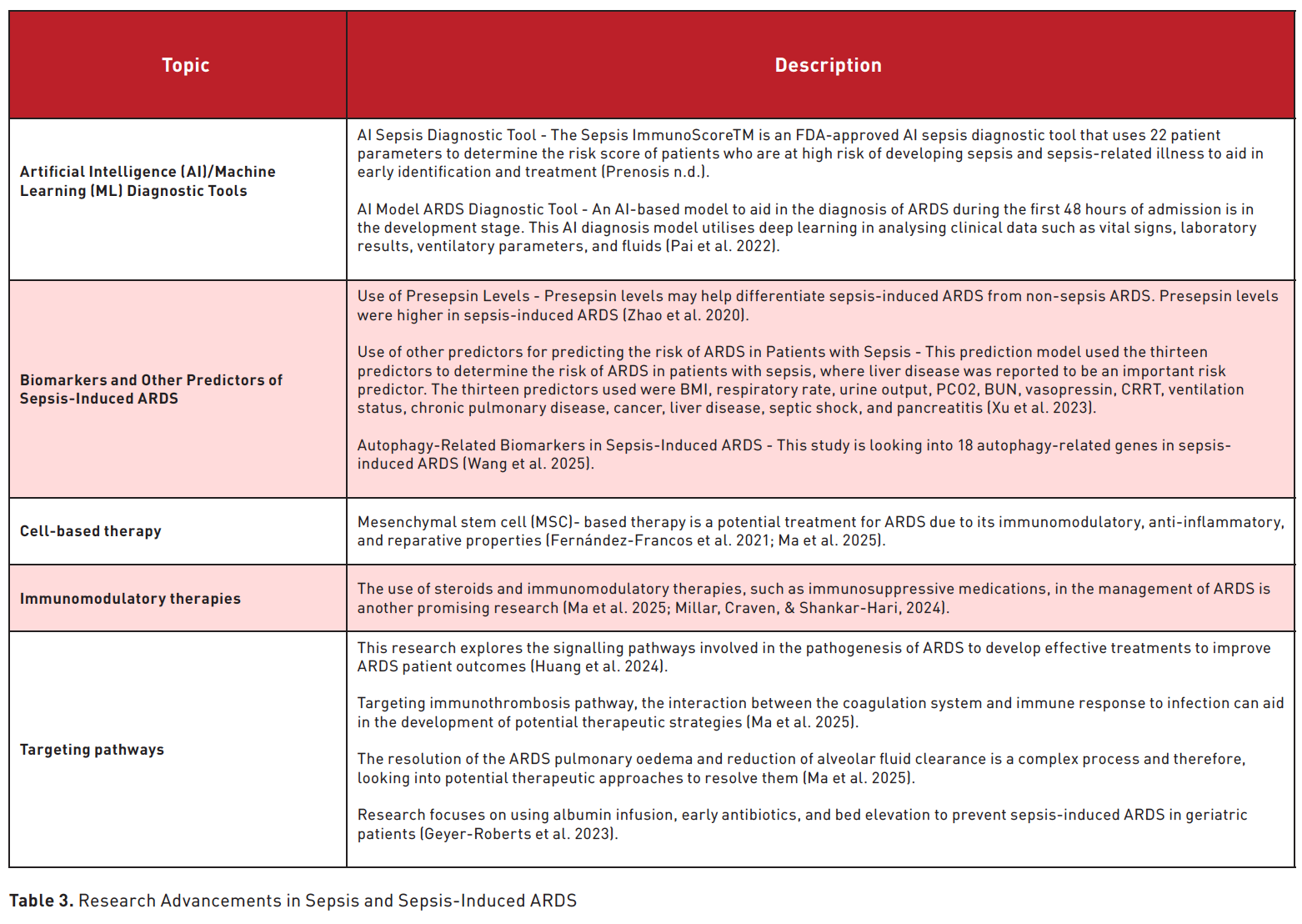 Sepsis, a life-threatening condition caused by a dysregulated immune response to infection, is a preventable global health crisis (Singer et al. 2016). A report in 2020 indicated that around 48.9 million people were affected by sepsis, of which 11 million deaths secondary to sepsis account for 20% of mortality globally (WHO 2024). One of the most common organs affected by sepsis is the lungs, which, when left untreated, leads to the development of sepsis-induced acute respiratory distress syndrome (ARDS). ARDS is a rapid and progressive noncardiogenic pulmonary that presents with severe hypoxaemia requiring mechanical ventilation (Geyer-Roberts et al. 2023; Zhao et al. 2020). This form of ARDS, associated with sepsis, is known to be more severe and has a poorer prognosis and higher mortality rate than non-sepsis-induced ARDS (Xu et al. 2023; Wang et al. 2024). In a study done by Auriemma et al. (2020), the mortality rate of sepsis-induced ARDS in the critically ill is 27-37%. Thus, early identification and timely appropriate management are crucial in improving clinical outcomes in patients with sepsis (Evans et al. 2021).