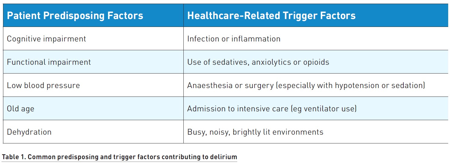 Wass S et al. (2008) Delirium in the elderly: a review. Oman Medical Journal, 23(3):150–157.