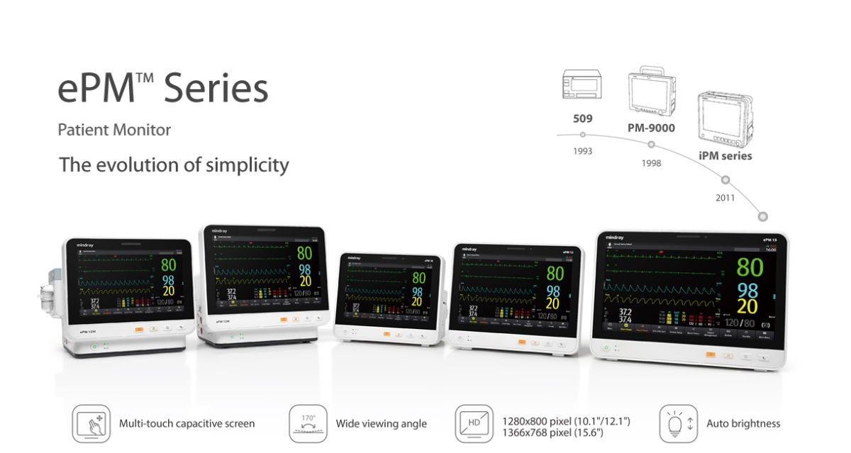 Inspired by the needs of customers, Mindray patient monitors adopt advanced technologies and transform them into accessible innovation. The ePM delivers excellent visual experience, intelligent operation, accurate physiological measurements, smooth workflow and comprehensive connectivity options for demanding hospital settings, such as Emergency Rooms, Recovery Units, Sub-acute Units and General Wards.